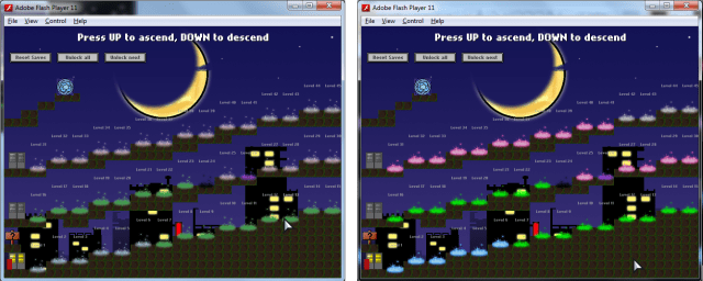 Two versions of the game, with the new portals on the right. Definitely much more striking than before. I’ve updated the portals across most existing levels as well.