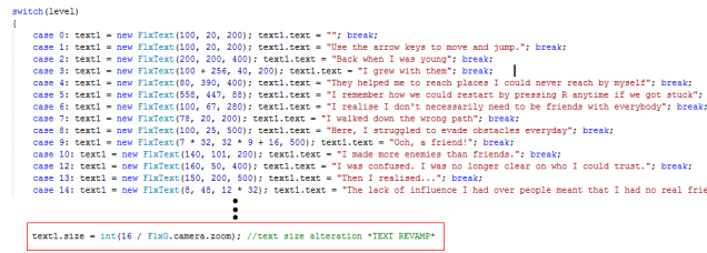 But I still have to change the x,y positions of every level’s texts AGAIN! That’s something I can’t cheat haha. This may seem like a relatively simple task anybody can do, sorta like QA, but I don’t know anyone who would bother to help, so I guess I’m on my own!