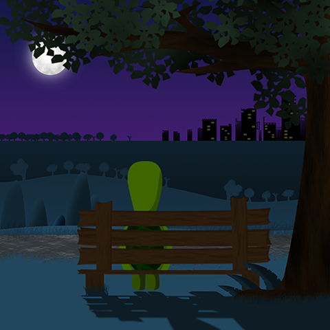 Even though the tree, city backdrop and the bench were reused assets, it still took me longer than I wanted, because it was fun doing it and I wanted to make the scenes look good. The day picture received a different colour scheme because the original picture makes the scene look too warm (though it was meant for a sunset originally). The night picture is my favourite no doubt.