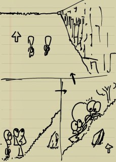 For a lot of the new scenes, I tend to put many of them together on a single page. But the game screen is only large enough to contain 1 or 2 scenes. So I pan my camera from scene to scene. Sometimes, I stop the camera at a specific scene to play an animation, or do its thing (scrolling up/down). This was the most difficult thing to do. I do this a lot with later scenes.