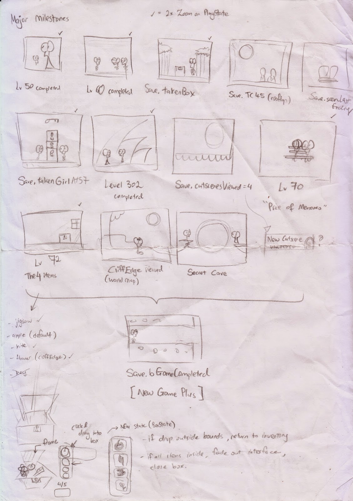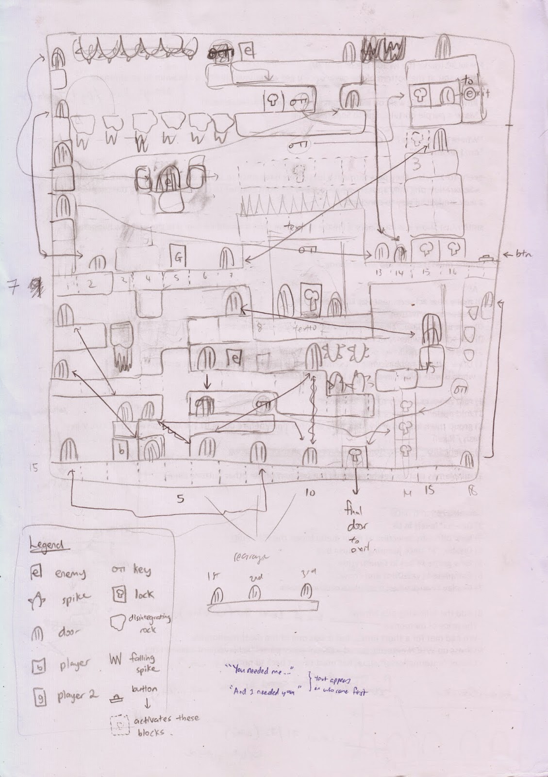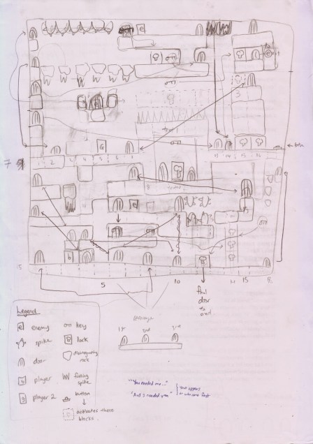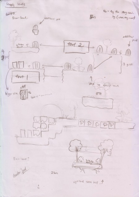 Also in the works, I may be possibly creating a new “epic” puzzle level. As I was drawing this sketch the other day, I showed it to my friend beside me who actually studied game design. He actually went to “play” the level which I drew on paper, imagining the character on the paper itself. He’s so cool.