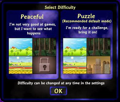 The old difficulty Popup was pretty decent and satisfactory. However, there was no warning that indicated that playing the game on Peaceful would lock certain levels out, so I added a hint of that to the screen where you select difficulty for the first time.