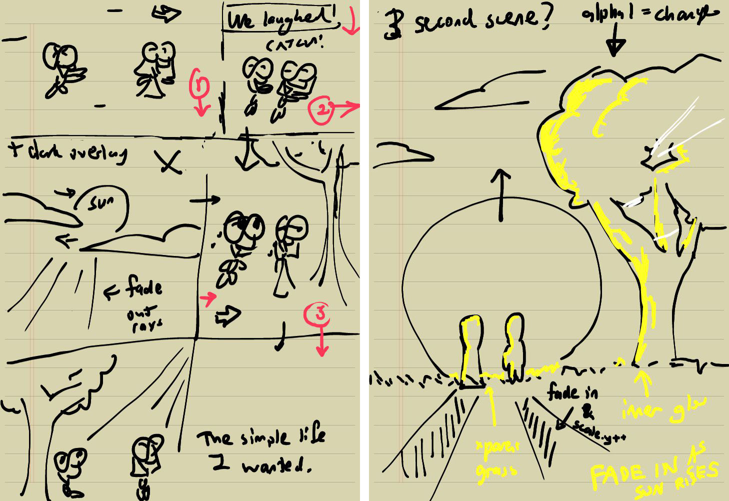 I also started drawing these story scenes, to add value to the game. However, my testers had mixed feelings about them.