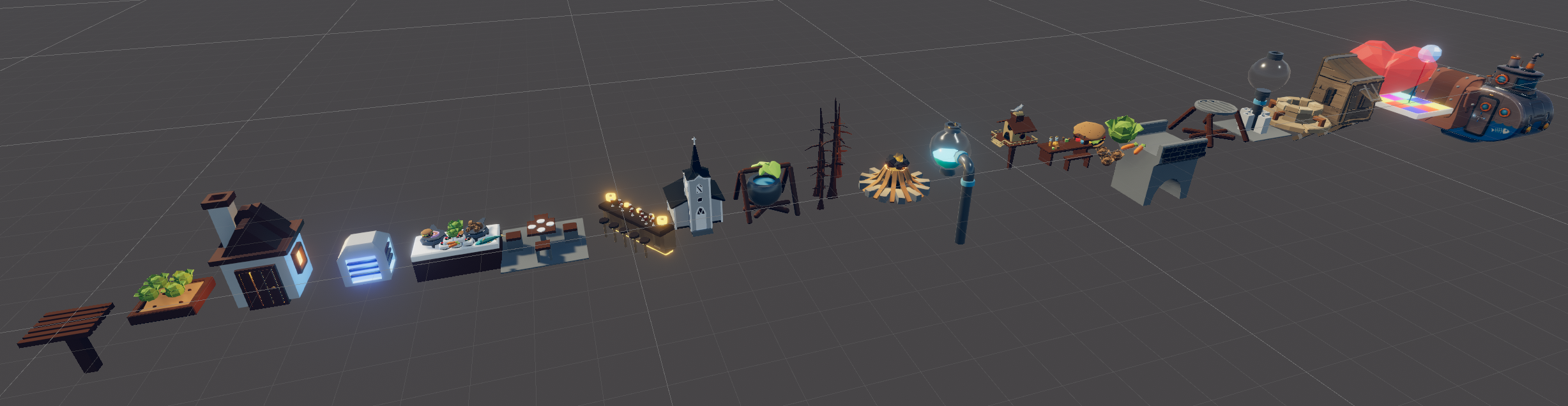 I had modelled different buildings and to save time, created a scene with all buildings in it.