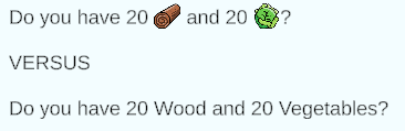 The sentence at the top is not only shorter but you can clearly read the resources you require by opening your inventory as the inventory displays all your item icons.